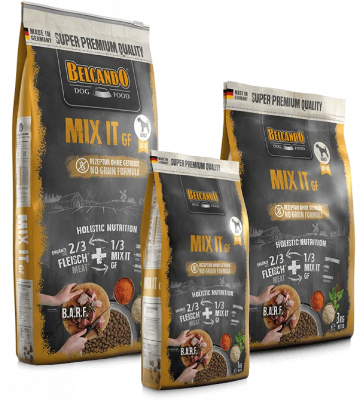 Die Fütterung von Frisch- oder Frostfleisch ist gut - aber nur mit der richtigen Ergänzung! Reine Fleisch- oder B.A.R.F.-Menüs liefern nicht alles, was Dein Hund für ein vitales Leben braucht. Hier die richtige Balance im Napf zu finden, kann schwierig und auch aufwendig sein. Mit BELCANDO Mix it GF machst Du die Frischfleischportion im Handumdrehen zu einer runden Sache - ohne Getreide, dafür aber mit einer bedarfsgerechten Ladung an Mineralstoffen, Vitaminen, Spurenelementen und essenziellen Fettsäuren sowie Ballaststoffen.