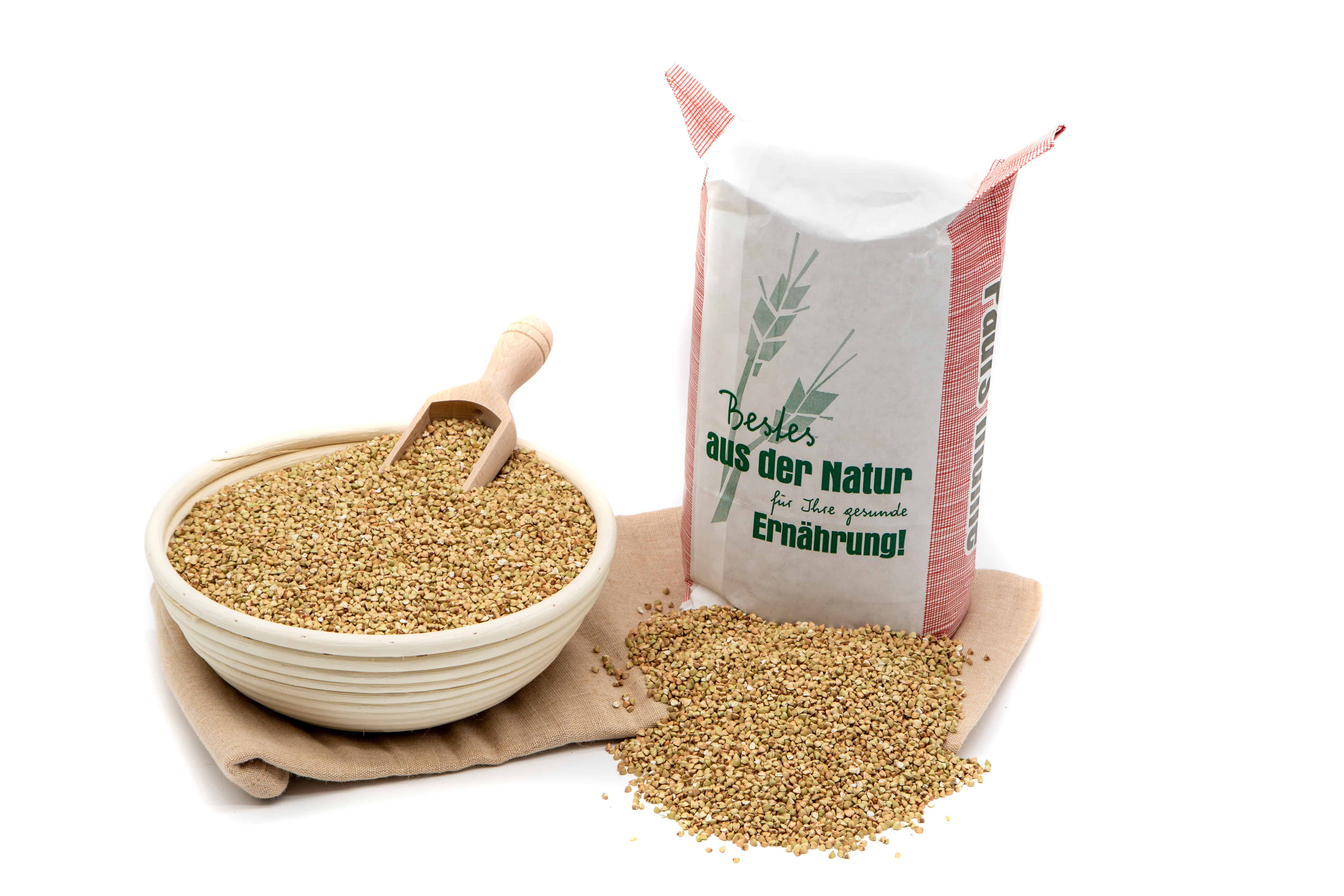 Ganze Körner! Unser heller, dreikantiger Buchweizen in Premiumqualität ist reich an wertvollen Ballaststoffen, und die Grundlage für viele köstliche Gerichte wie Buchweizenpfannkuchen, Bratlinge, Gemüsepfannen, Salate, Suppen, Fladen, Nudeln und Porridge. Für eine bekömmliche und gut sättigende Beilage köcheln Sie den Buchweizen mit der doppelten Menge Wasser 6 - 8 Minuten schonend, und lassen Sie ihn anschließend 10 - 15 Minuten ausquellen. Auch in traditionellen Gerichten wie Panhas findet Buchweizen in Form von Buchweizenmehl Verwendung. Das mild-nussige Pseudogetreide aus der Familie der Knöterichgewächse ist von Natur aus Glutenfrei und daher auch für Menschen mit Glutenunverträglichkeit geeignet. Da Buchweizenmehl nicht allein backfähig ist, wird es zum Backen gerne mit Weizen / Roggen kombiniert.