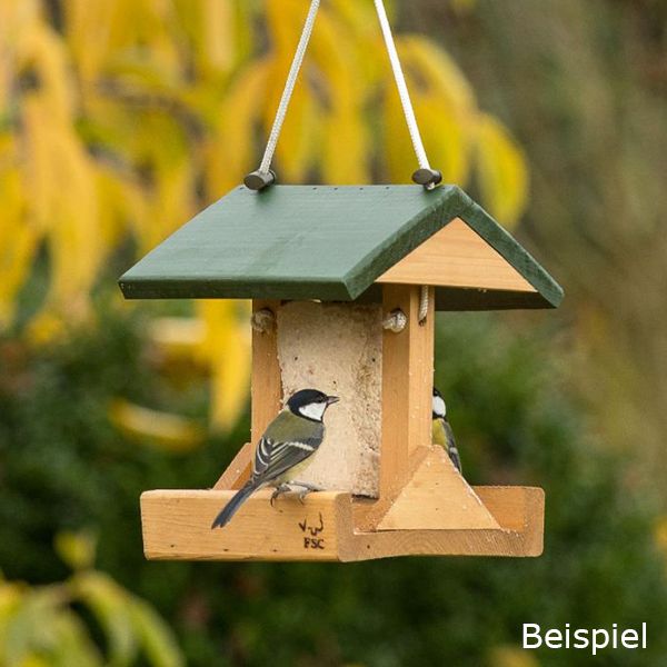 Für Blaumeise, Kohlmeise, Tannenmeise, Schwanzmeise, Haussperling, Rotkehlchen, Bergfink, Buchfink, Buntspecht, Heckenbraunelle, Mönchsgrasmücke, Star, Wintergoldhähnchen, Zaunkönig, Baumläufer, Amsel, Kleiber geeignet