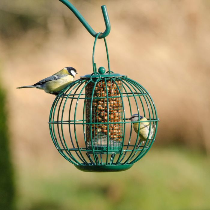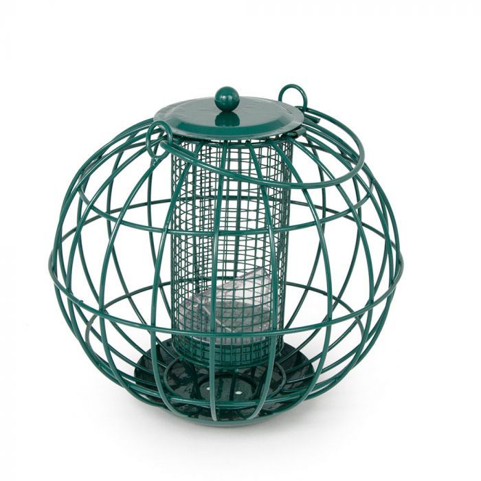 Der integrierte Schutzkäfig sorgt zudem dafür, dass nur die kleineren Vögel an das Futter gelangen.