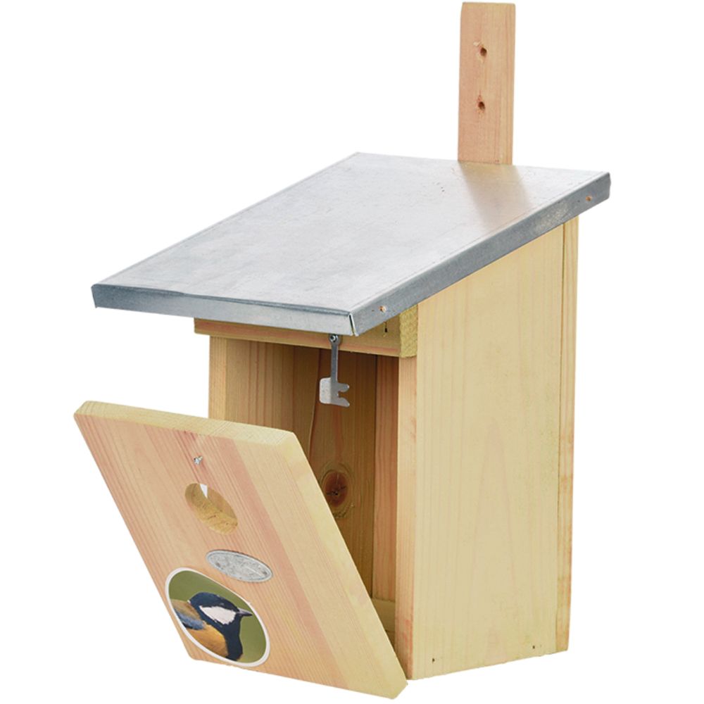 Der maßgeschneiderte Nistkasten mit Zinkdach bietet neben Kohlmeisen auch Blaumeisen, Feldsperlingen, Haussperlingen, Kleibern und Trauerschnäppern einen guten Nistplatz. Im Winter erweist der Nistkasten gute Dienste als Zufluchtsort vor schlechtem Wetter.