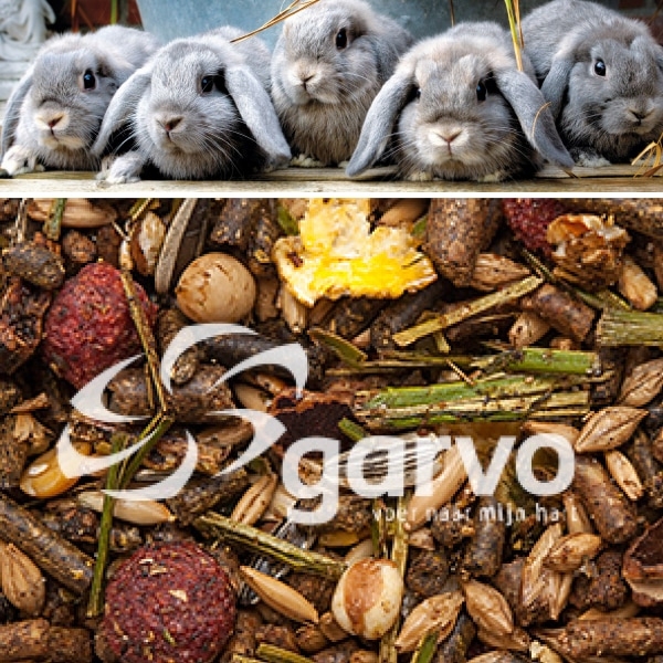 Garvo Alfamix Kaninchen ist ein abwechslungsreiches Müsli für (Zwerg-)Kaninchen jeden Alters. Das Müsli enthält alle Nährstoffe, die Kaninchen das ganze Jahr über benötigen. Ein gesundes Kaninchen glänzt, ist stark, fühlt sich in seinem Fell wohl und hat eine perfekte Hormonbalance. Alfamix Kaninchen unterstützt diese Gesundheit mit einer ausgewogenen Proteinzusammensetzung und anderen Bausteinen. Lecithin sorgt dafür, dass überschüssige Energie in Wärme umgewandelt wird und nicht zu großen Hautfalten oder einem Wammen führt. Das Futter enthält auch eine sorgfältig ausgewählte Kombination aus Säuren, Kräutern, Urmineralien und Hefen, die die Kaninchen auf natürliche Weise schützt. Die Mischung aus pflanzlichen Ölen trägt zu einer guten Fruchtbarkeit, einem schönen Fell und problemlosem Haaren bei.
