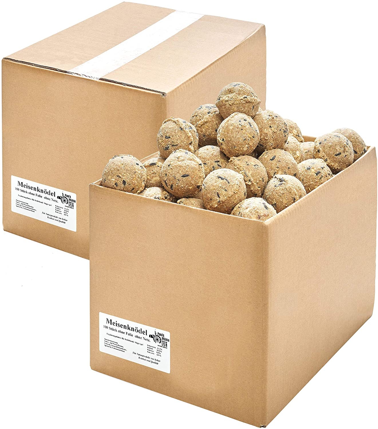 Lieferumfang: 2 Kartons mit jeweils 100 Meisenknödeln (= 200 Stück)