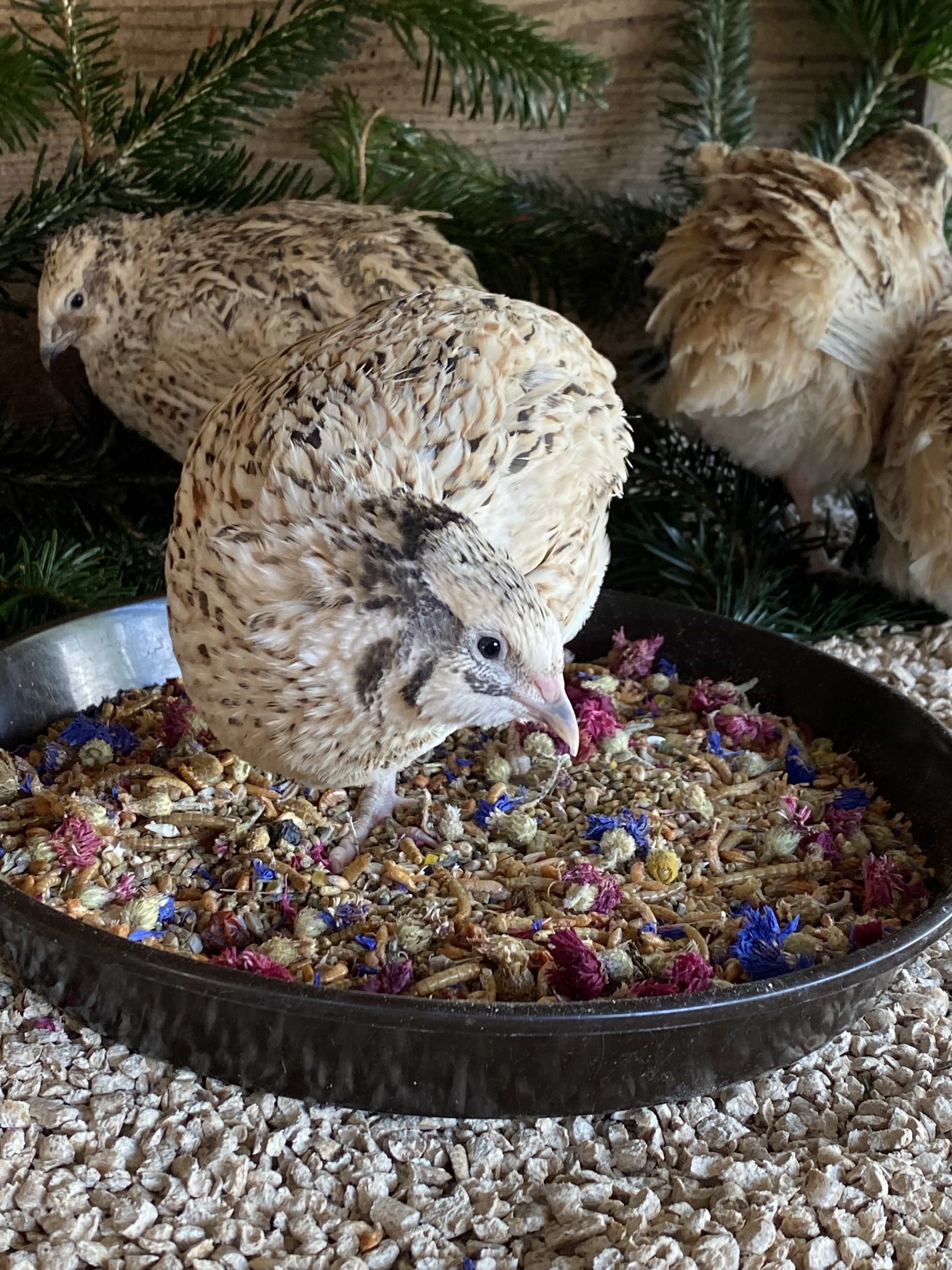 Die Basis unserer Futtermischung bilden vitaminreiche und mit Nährstoffen vollgepackte Pellets die alles enthalten, damit die Wachteln gesund und vital bleiben.